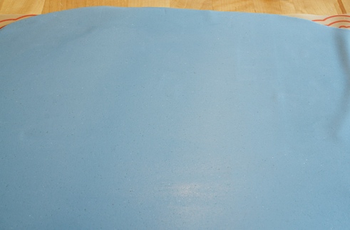 Kavla ut marsipanen till ett tillräckligt stort täcke så slipper man veck runt kanterna. Vänd på marsipanen ett par gånger medan man kavlar för att vara säker på att den inte fastnar i underlaget. För utseendet skull skall man inte kavla för tunt. Lagom är 3-5 mm tjockt. Skall man slå in en rulltårta är det praktiskt att skära till rätt längd på marsipanen innan man lägger på täcket.