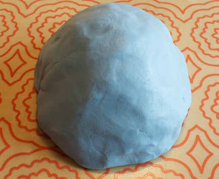 Börja med att knåda marsipanen så att den blir mjuk och följsam. Avsluta med att forma den till en någorlunda jämn klump.