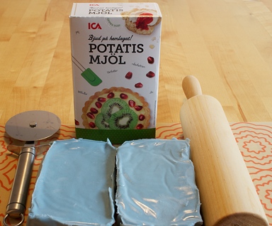 Potatismjöl – Behövs oftast inte om man använder ett bra underlag av silikon. Skulle marsipanen fastna kan man strö på lite potatismjöl.