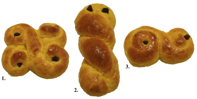 4. Tillsätt resten av degvätskan, saffran, socker, salt och mjöl (spara ett par dl till utbakningen). Arbeta degen kraftigt tills den är smidig och blank. Tillsätt inte allt mjöl på en gång. För mycket mjöl ger kompakta och torra lussekatter. Hellre en lite för kladdig deg än för torr.